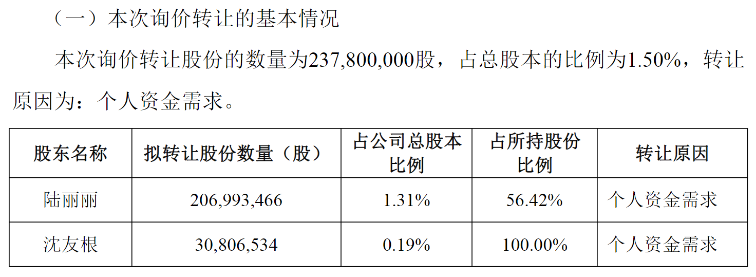 目前,本次询价转让拟转让股份已获全额认购,初步确定受让方为16家机构投资者,拟受让股份总数为2.378亿股。