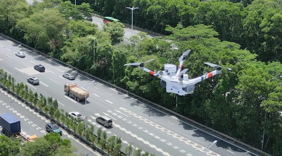 另一方面,平安产险深圳分公司联合交警部门,启用平安无人机开展高空巡视与语音预警工作。在福田区域,无人机覆盖福田街道、华强北街道、华富街道、莲花街道等6个街道的小区;在南山,预警范围覆盖侨乡街道、西丽街道、龙井街道、桃源街道等8个街道及小区,通过“空中喊话”的形式,循环播报台风避险知识与防御要求。