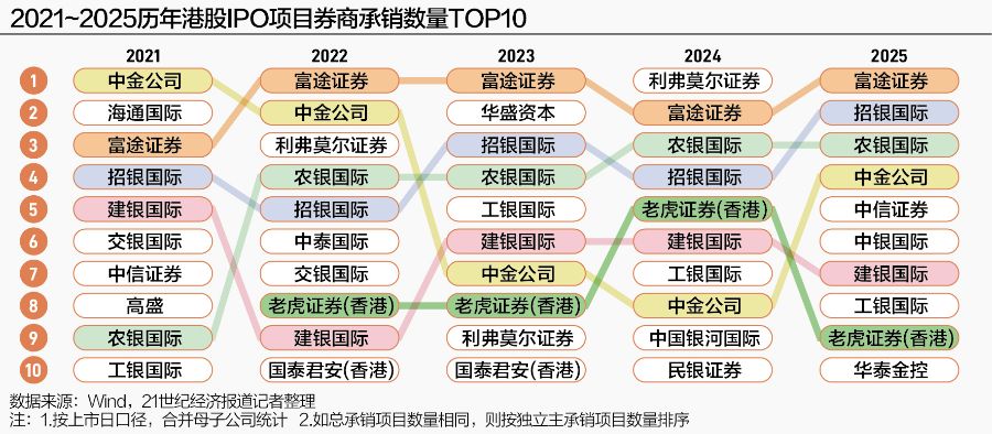 纵观近五年的港股IPO承销数量榜单,两类机构尤为突出。