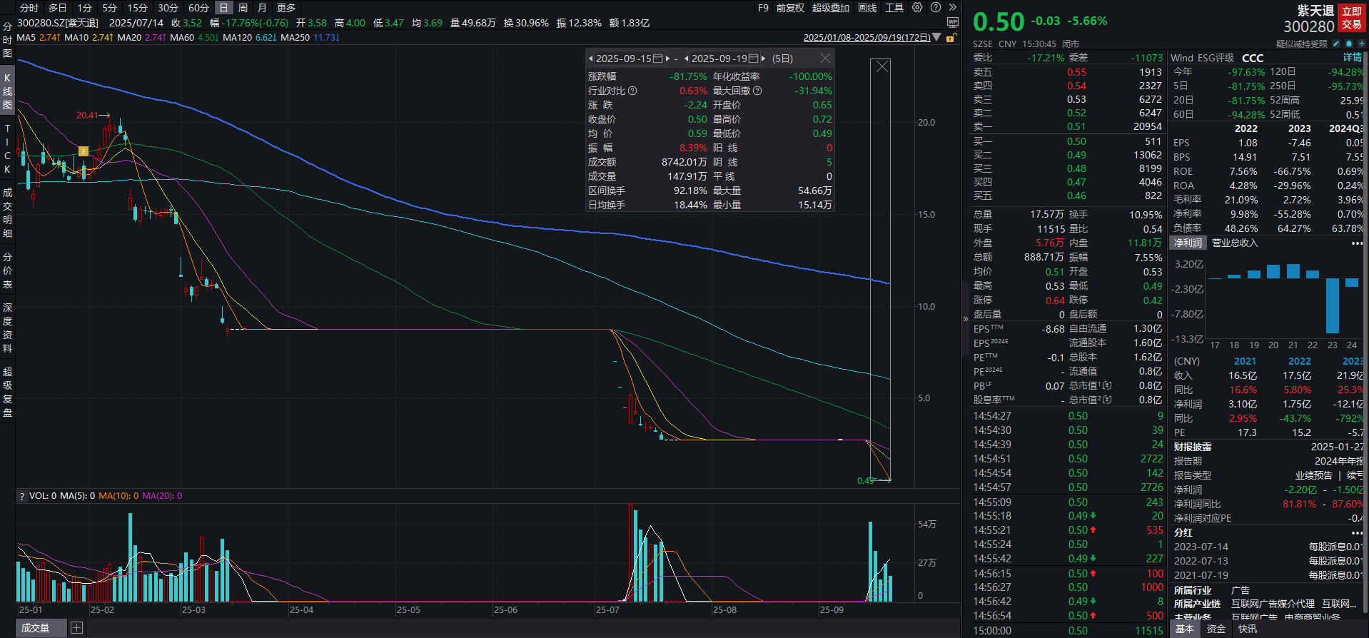 两年虚增收入近25亿,最熊股紫天退周内跌超81%