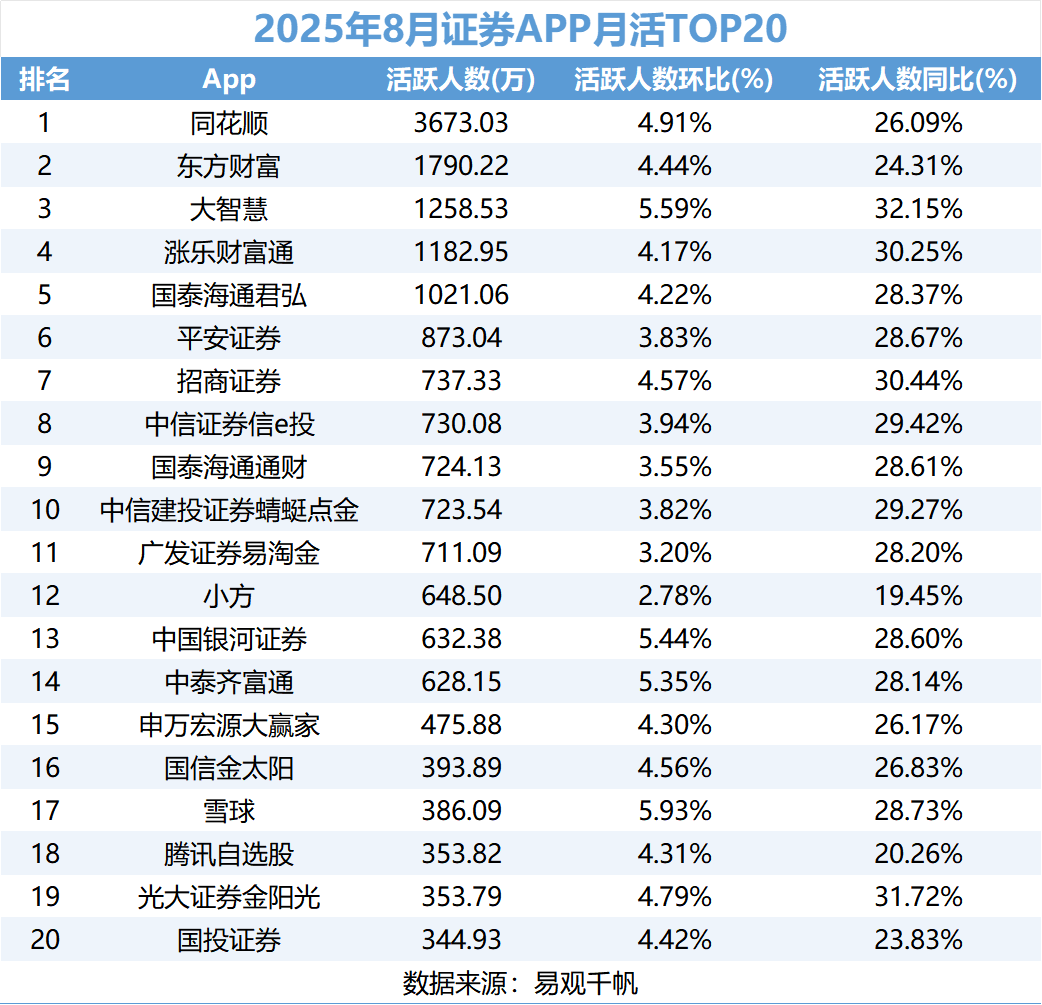 8月市场行情火热,A股迎来“泼天的流量”,带动证券APP用户活跃度大幅提升。