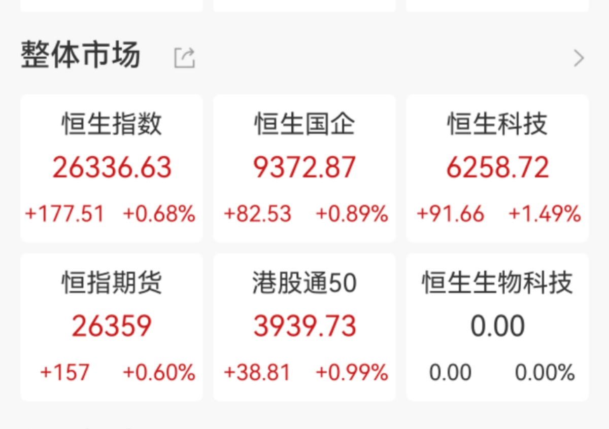 港股小幅低开后回升上扬,截至24日11:18,香港恒生指数涨0.68%,恒生科技指数涨1.49%。阿里巴巴-W涨6.46%,中芯国际涨4.29%,腾讯控股涨0.87%。