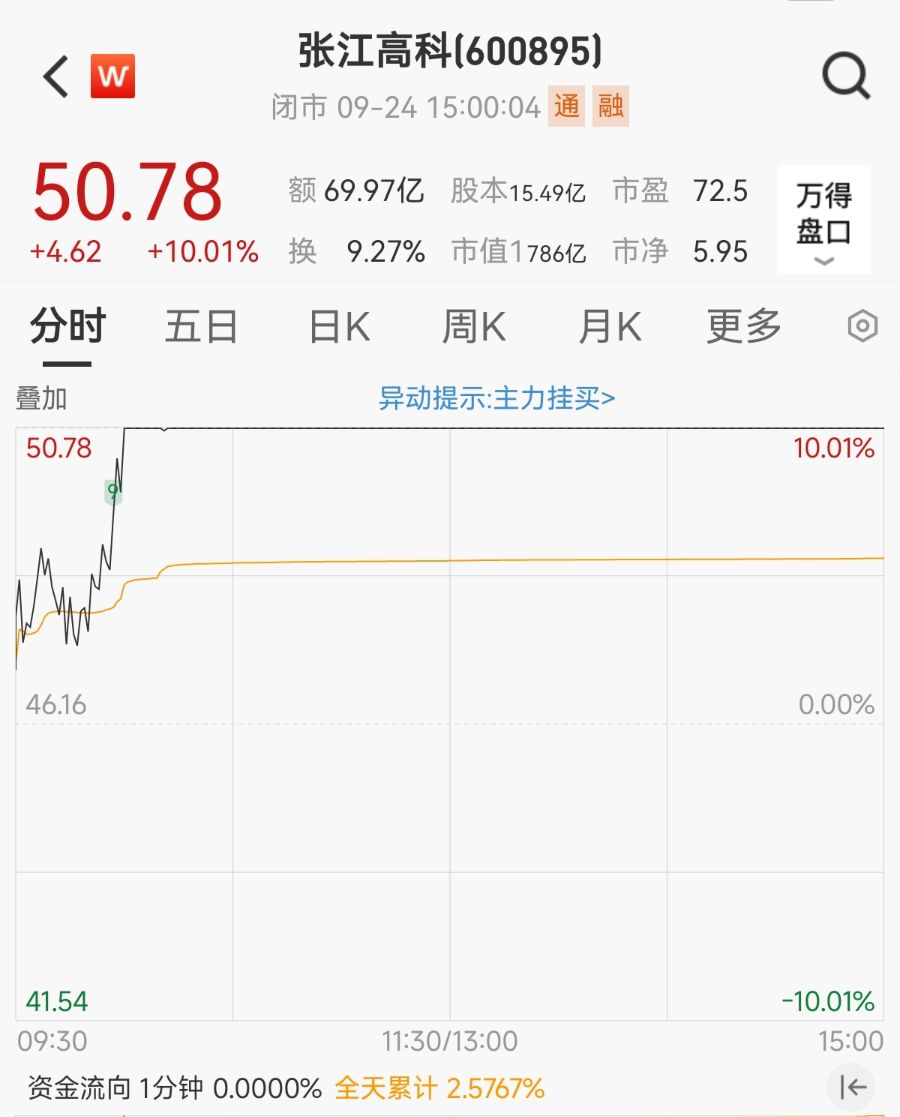 9月24日,光刻机板块持续活跃,焦点股张江高科(600895.SH)再度涨停,实现两连板,截至收盘报50.78元/股,股价创历史新高。盘后,张江高科发布股票交易风险提示性公告称,公司近期主营业务无重大变化,主营业务为张江科学城的产业空间载体建设运营以及主导产业投资。公司基本面没有重大变化,不存在应披露未披露的重大信息。