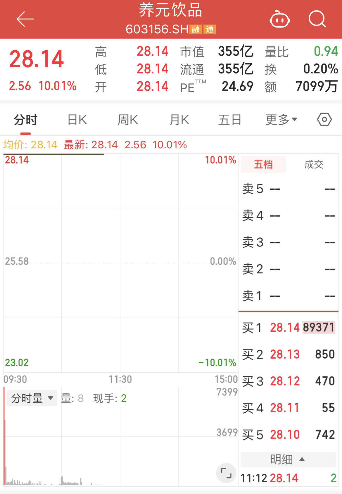 9月26日,“六个核桃”母公司养元饮品(603156.SH)一字涨停,报28.14元/股,总市值来到354.6亿元,实现三连板。