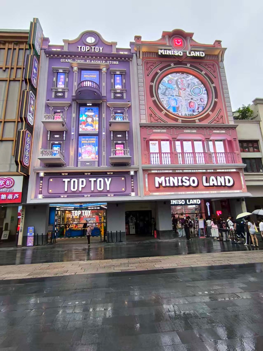 在广州北京路上,TOP TOY门店与MINISO LAND 门店仅一墙之隔。TOP TOY门店内的一名店员向21世纪经济报道记者简单解释了两个品牌的区别,“TOP TOY与名创在业务上相对独立。TOP TOY的潮玩IP产品占比会更高,而名创优品门店中会有更多的日用品。”