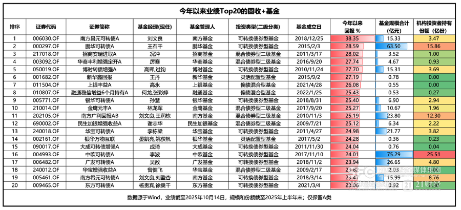 截至今年10月14日,南方昌元可转债A年年内收益超过38%,截至二季末的规模为15.33亿元。刘文良自2020年3月6日开始接管该基金以来,截至10月16日,期间任职年化回报超过10%,同类排名第一。