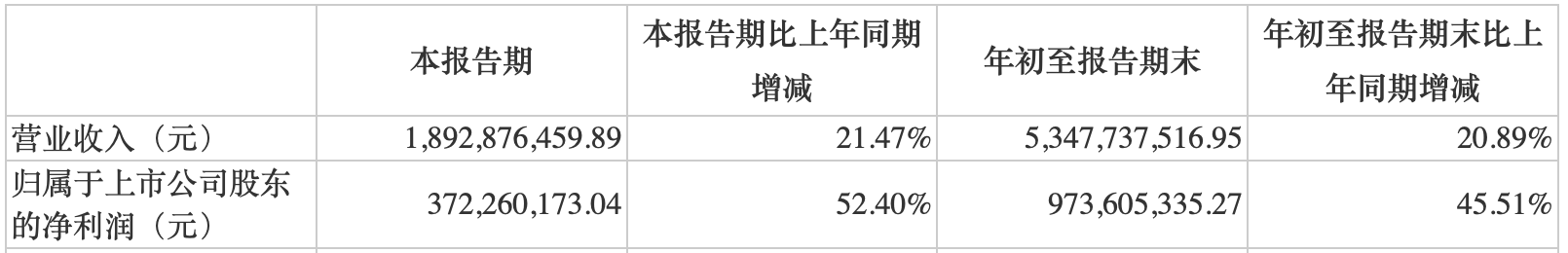 其中,第三季度比前两季度增长更快:第三季度单季营业收入为18.93亿元,同比增长21.47%;归母净利润为3.72亿元,同比大增52.40%。