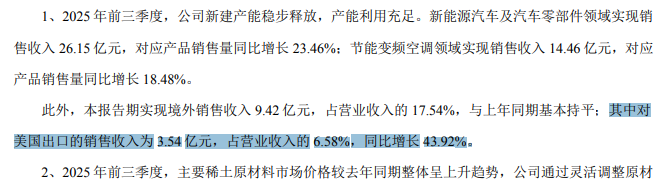 10月20日晚间,该公司对外披露三季报,前三季度公司实现营收53.73亿元,其中对美国出口销售收入为3.54亿元,同比增长43.92%。