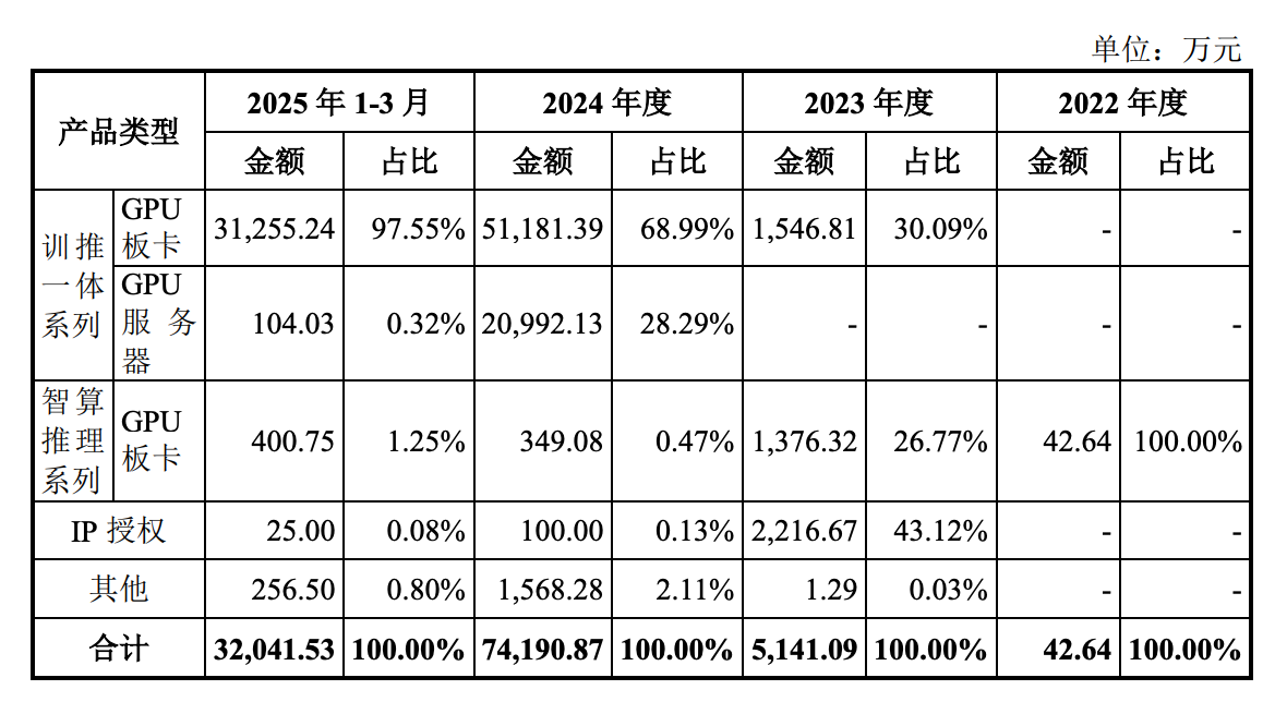 但2025年一季度,沐曦的训推一体GPU服务器收入大幅下滑。沐曦解释道,根据公司销售策略,未来产品交付的形式将以GPU板卡为主,以服务器整机的形式交付将逐渐减少。
