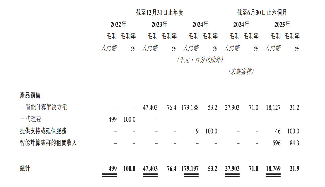 在此基础上,该公司还开发了智能计算集群租赁服务。2025年上半年,壁仞科技实现了智能计算集群的租赁收入70.7万元,贡献了当期收入的1.2%。