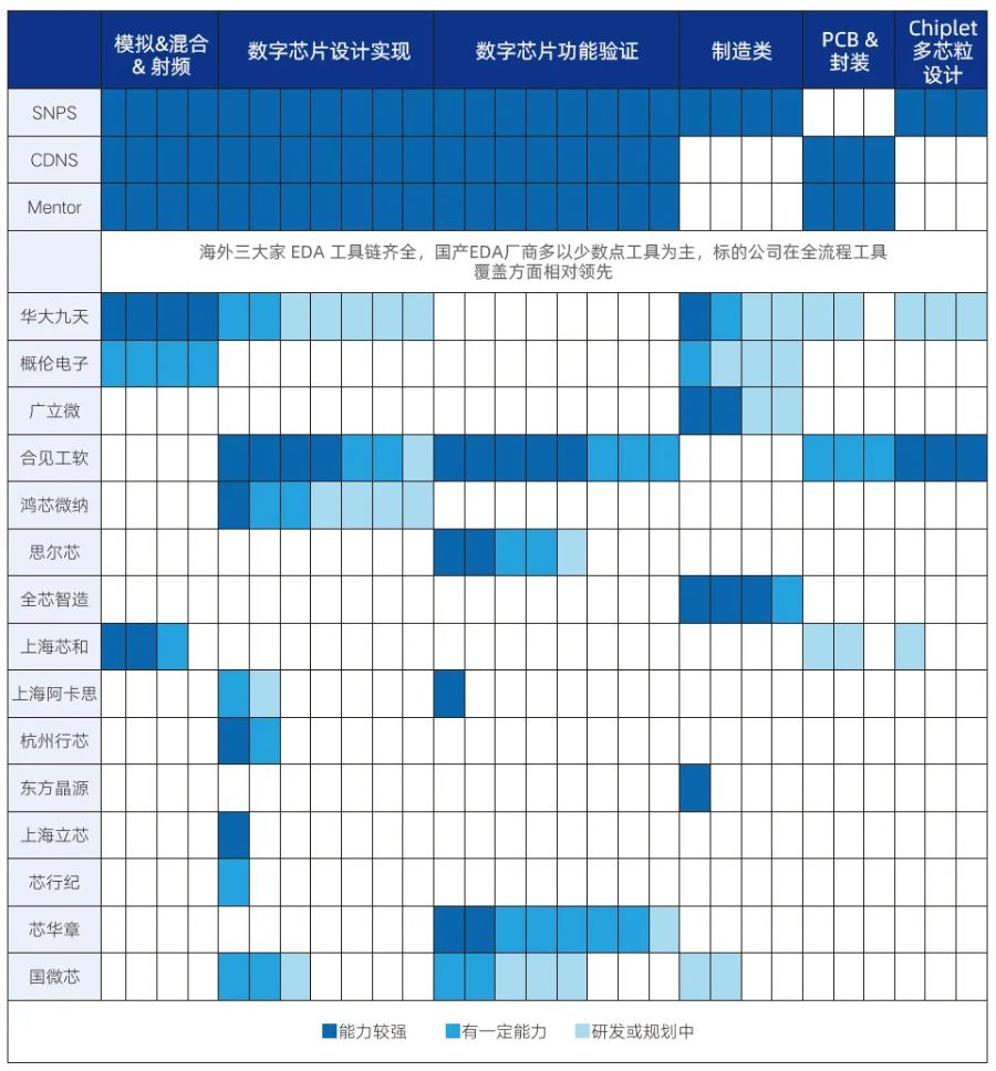 (国内EDA产品覆盖情况。图片来源:国新基金研报)