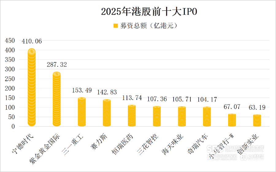 从动力电池龙头宁德时代,到医药巨头恒瑞医药,再到消费白马海天味业,以及三一重工、赛力斯、三花智控等行业龙头,仅这6家公司的合计募资额就高达1033.20亿港元,贡献了港股全年IPO募资额的36.12%。