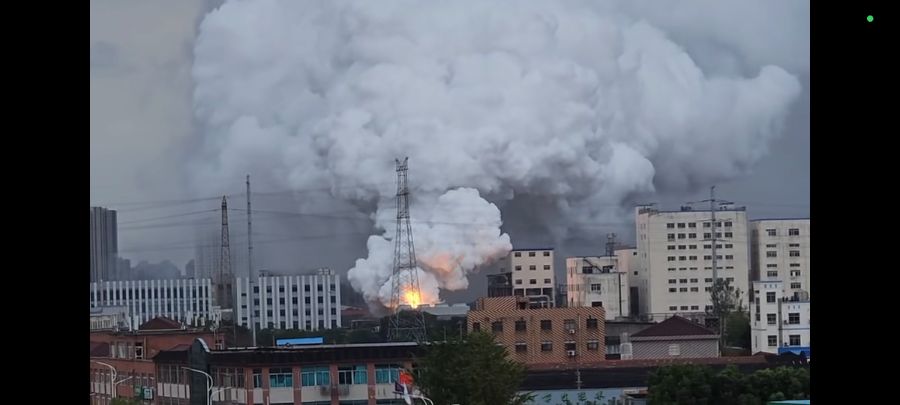 网上流传图片和视频显示,该地区疑似火光四射,白色烟尘冲天。