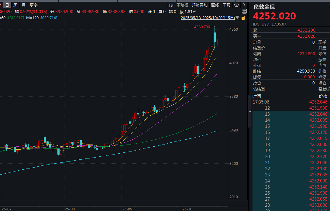 其中,伦敦金现货在三季度上涨16%的基础上,10月17日再次冲高至4380美元/盎司,短期市场波动风险随之提升。