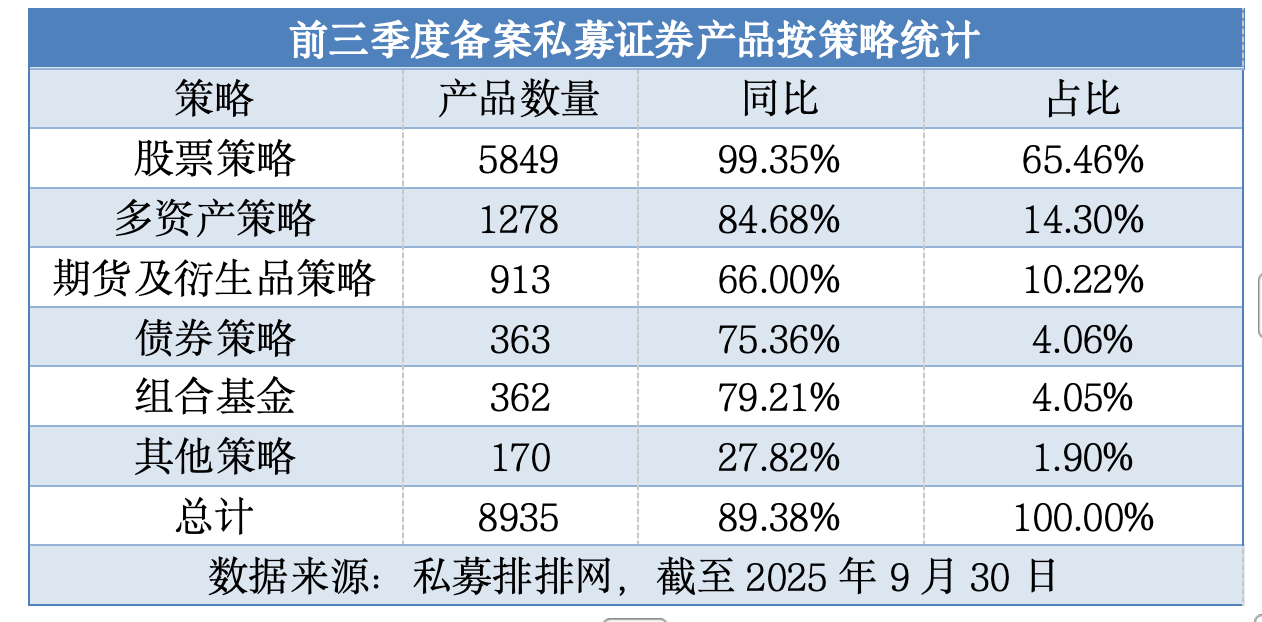 来自私募排排网的数据显示,今年前三季度,私募基金行业共备案私募证券产品8935只。