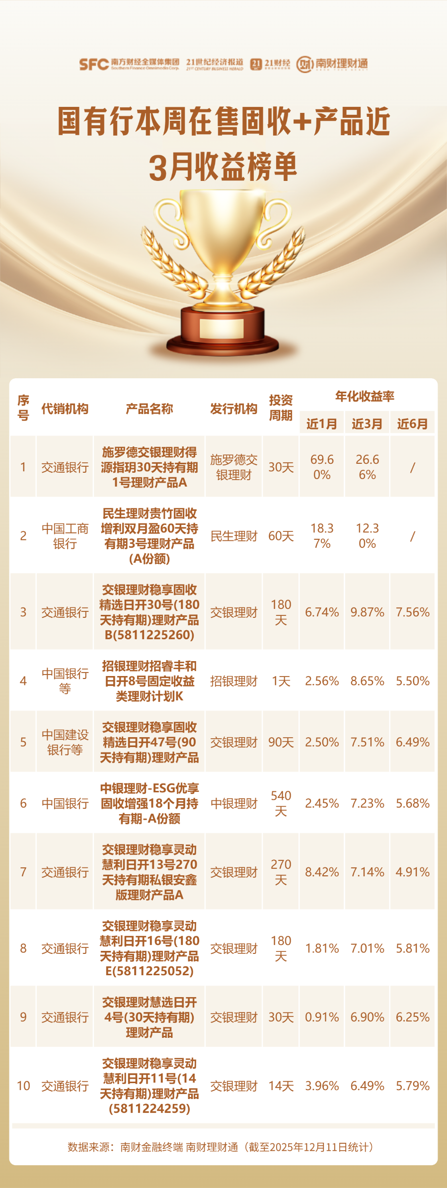 为提供有效的选品参考,榜单展示了产品近一月、近三月及近六月的年化业绩,并按照近三月年化收益率进行排序,以此反映其在近期市场波动中的多维度收益表现。
