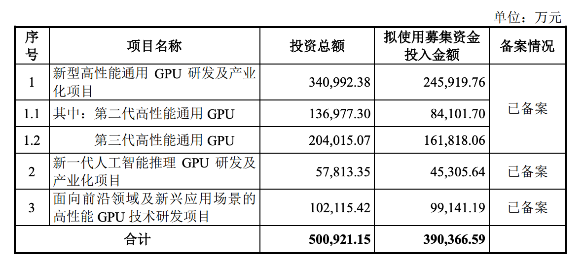 此次沐曦登陆科创板,也是为研发和产业化保驾护航。该公司拟将所募资金用于新型高性能通用GPU研发及产业化项目、新一代人工智能推理GPU研发及产业化项目、面向前沿领域及新兴应用场景的高性能GPU技术研发项目。其中,新型高性能通用GPU研发及产业化项目包括C600、C700两个研发子项目,是此次募资的主要投入方向。