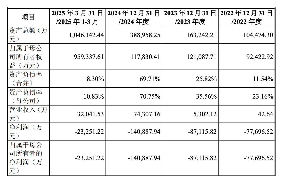 2022年、2023年、2024年,沐曦股份分别实现营业收入42.64万元、5302.12万元、7.43亿元,最近三年营业收入复合增长率为4074.52%。2025年第一季度,该公司已实现营业收入3.2亿元,接近2024年全年营收的一半。